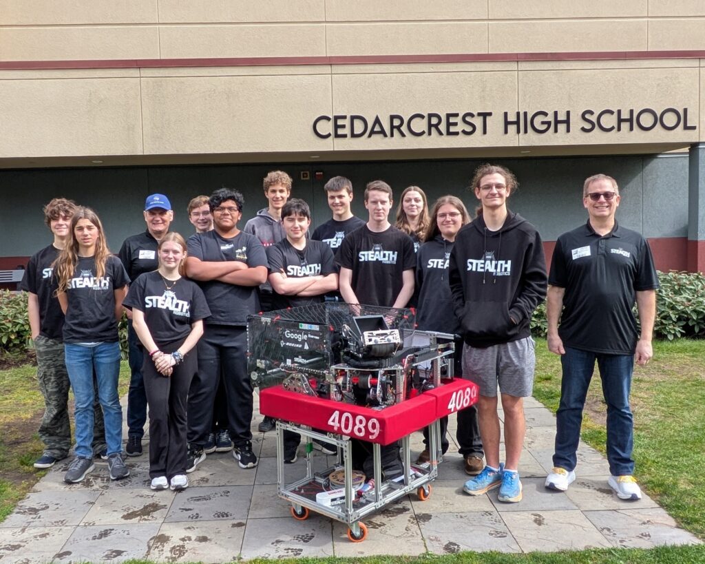 On Friday April 3rd the Red Wolves community came out to give the Stealth Robotics team a State Send Off for their journey to the FRC PNW District Championship taking place in Cheney, WA April 8 – 11. The State Send Off tradition at Cedarcrest High School honors students who are competing at the state level and beyond, and Stealth appreciates all the Red Wolves who lined the halls to loudly cheer for them and their robot Jeff as they get ready to compete for a shot at the FRC World Championship. Go Red Wolves! Go Stealth!